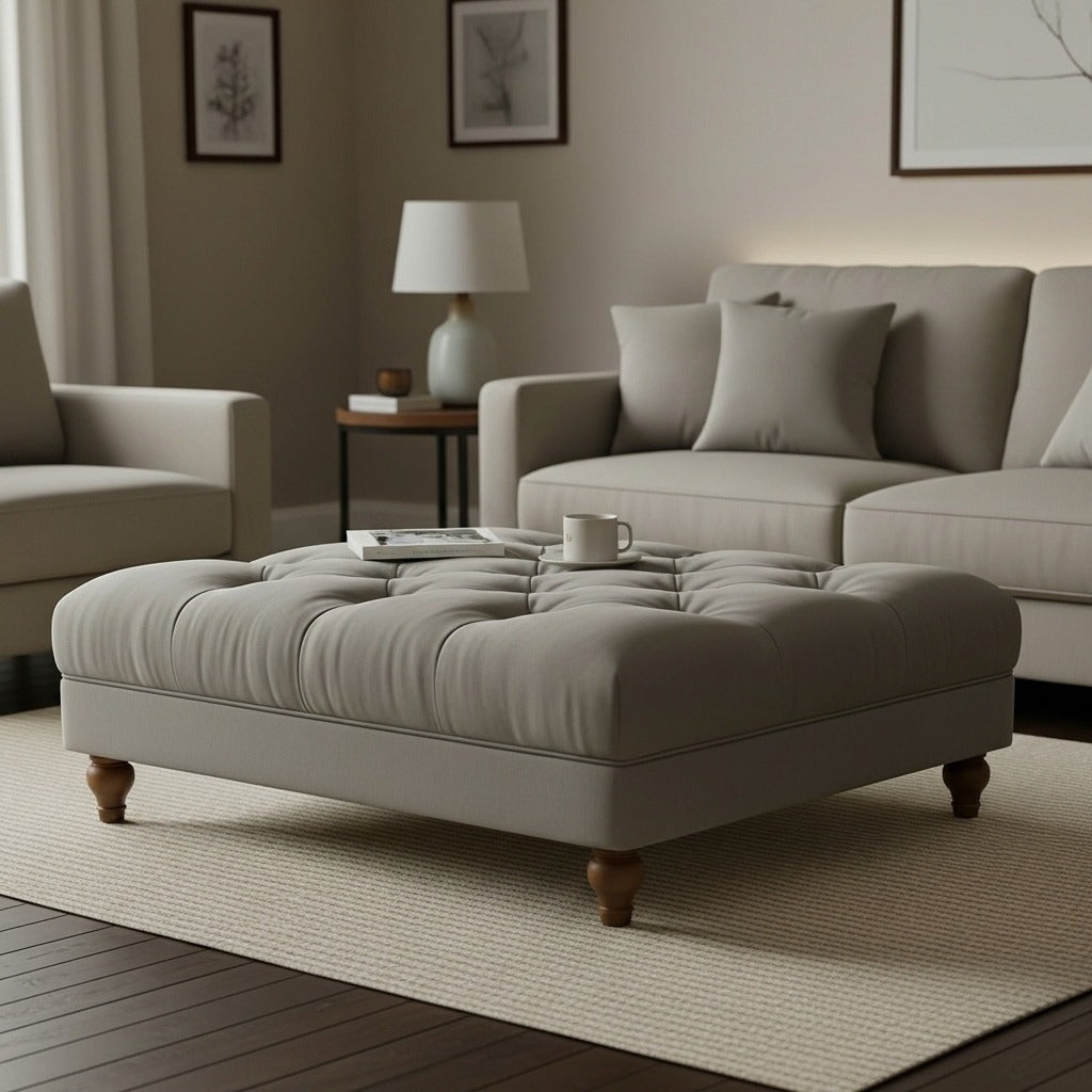A luxury Chesterfield footstool coffee table designed for comfort, style, and premium living room interiors.