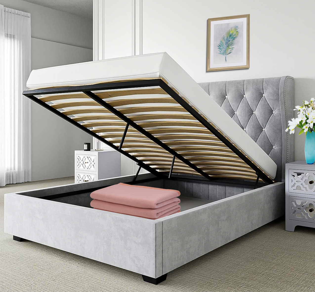 Kids Handmade Linea Plush Velvet Bed Frame Upholstered Bed with Ottoman Storage