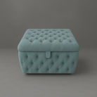 The Elite Elevate Ottoman Box combines classic Chesterfield design with practical storage solutions. The main picture showcases the ottoman in Teal Plush Velvet, exuding opulence and style.