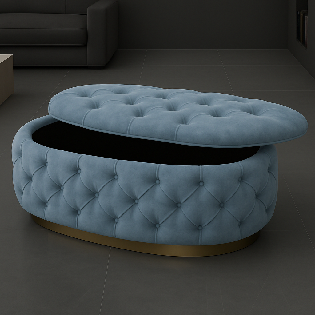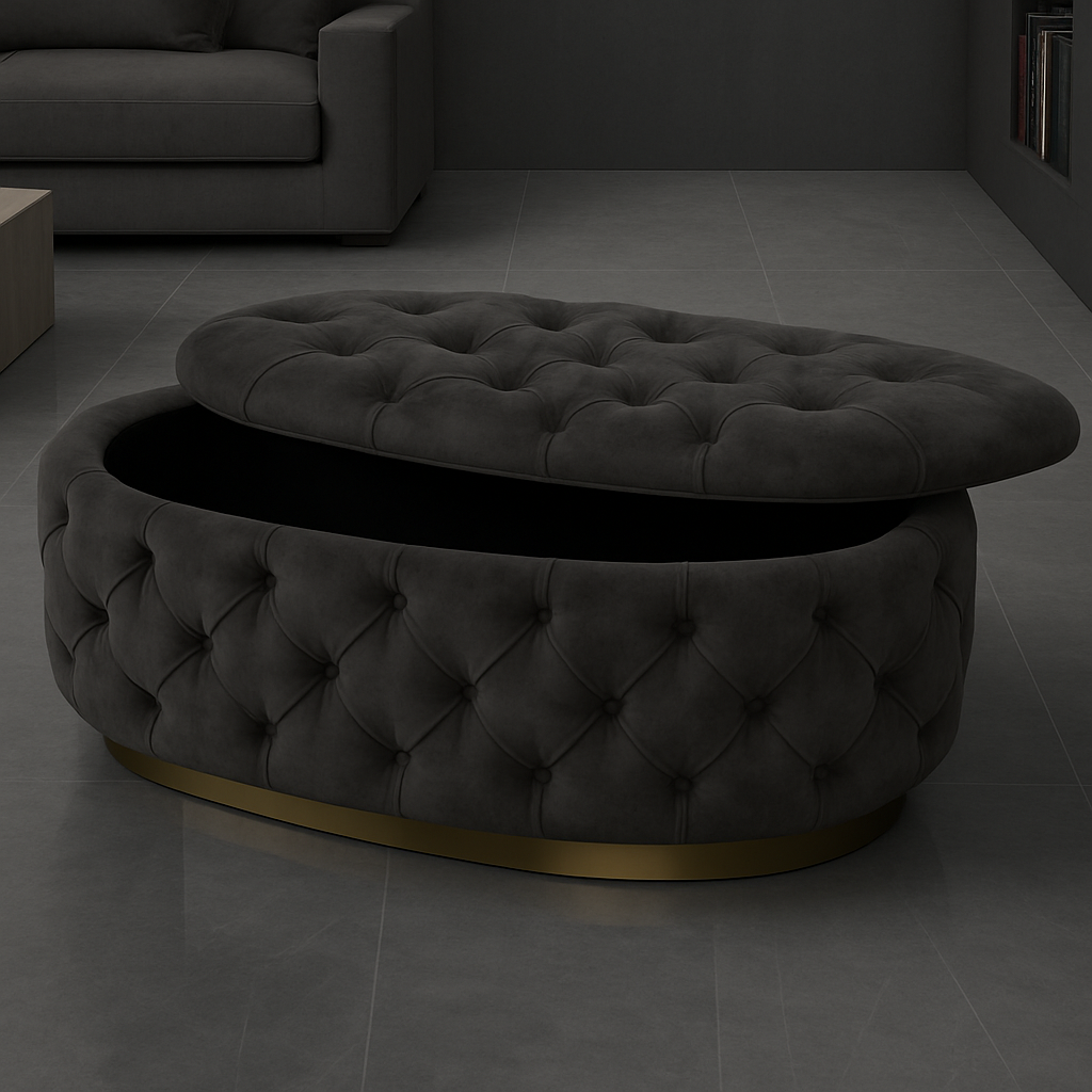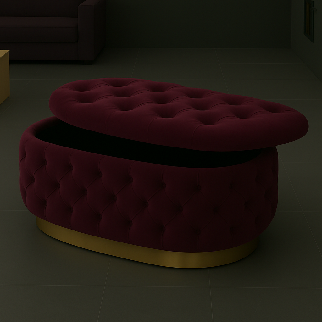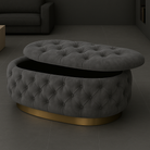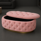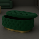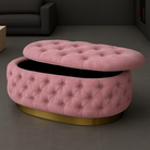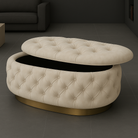 Experience luxury and functionality with the Handmade Opulent Oval Shaped Fully Upholstered Storage Ottoman Box.