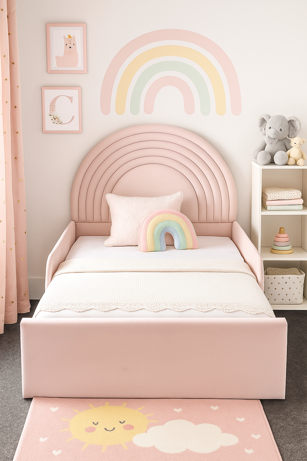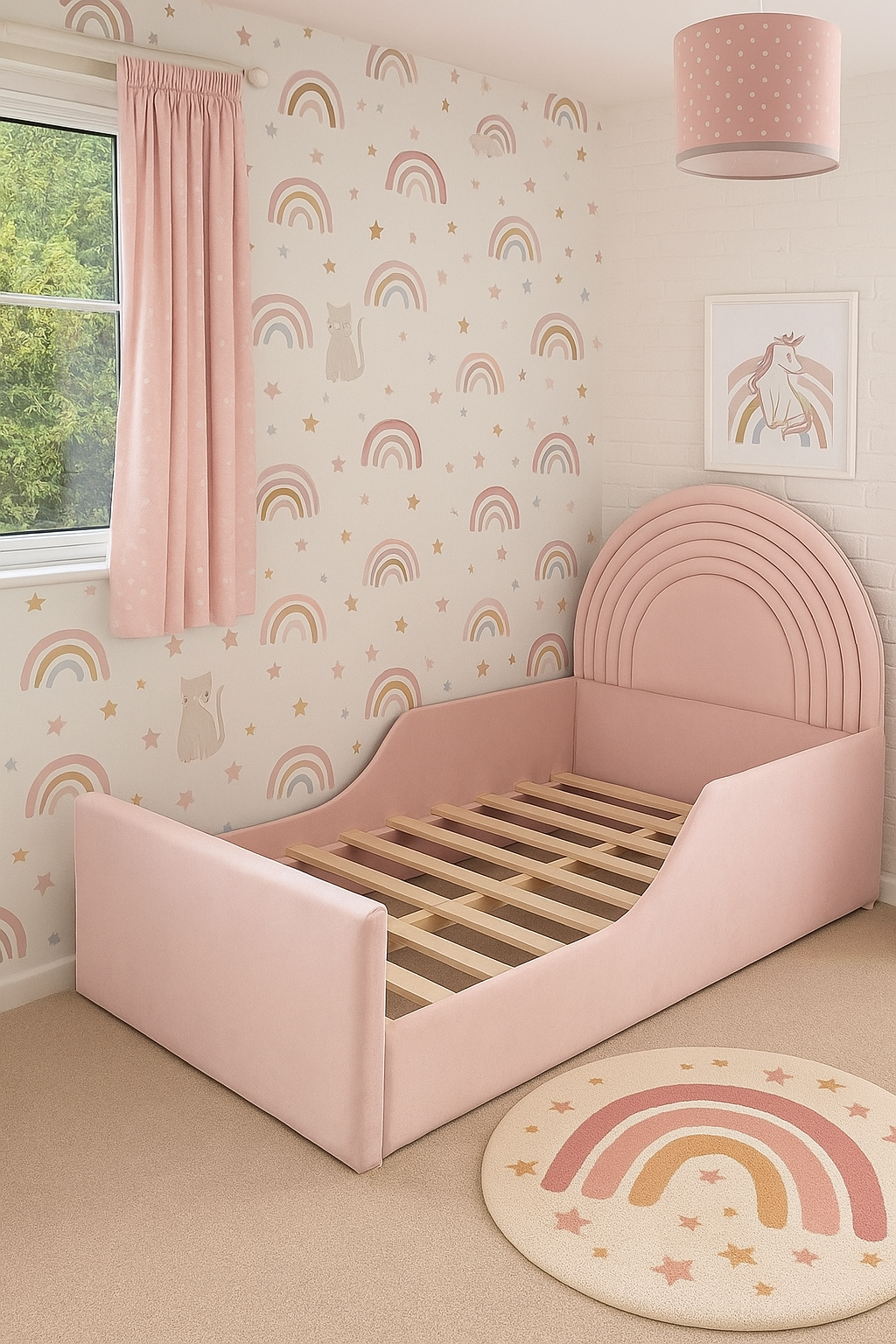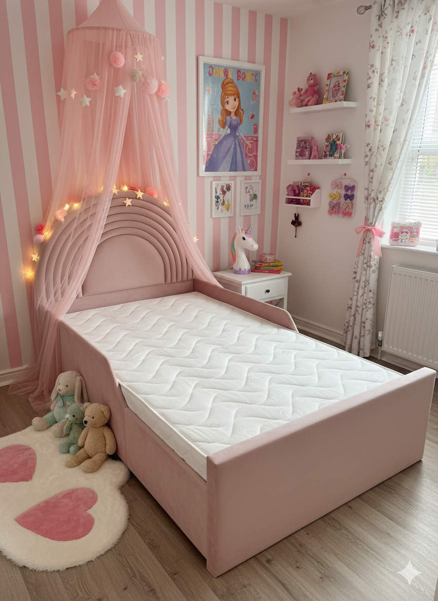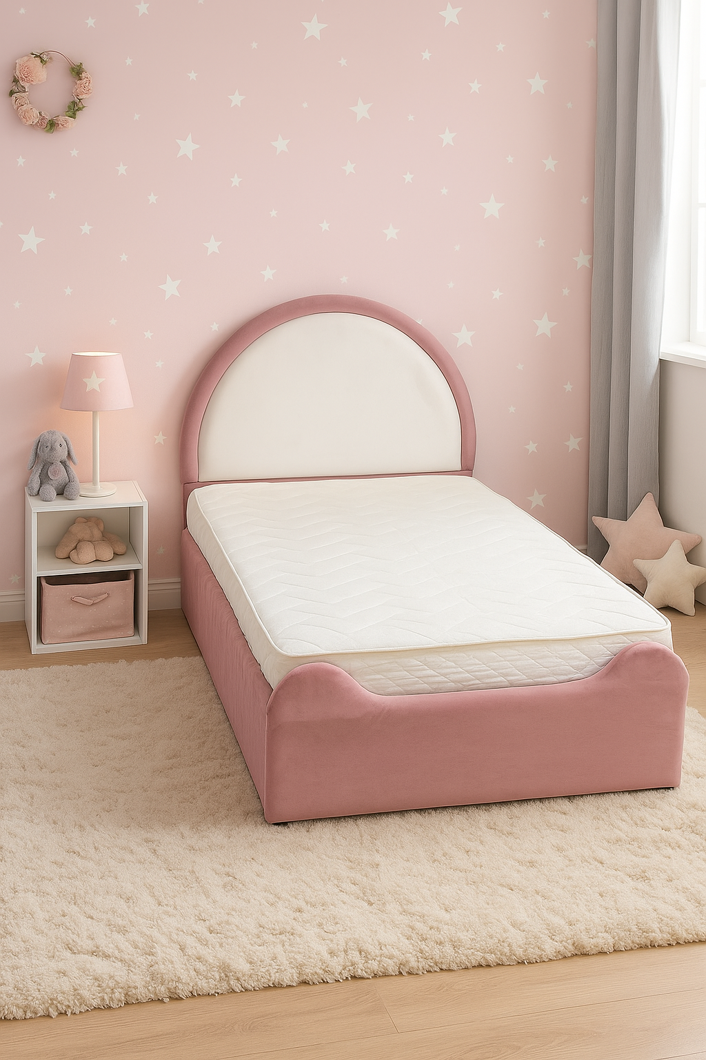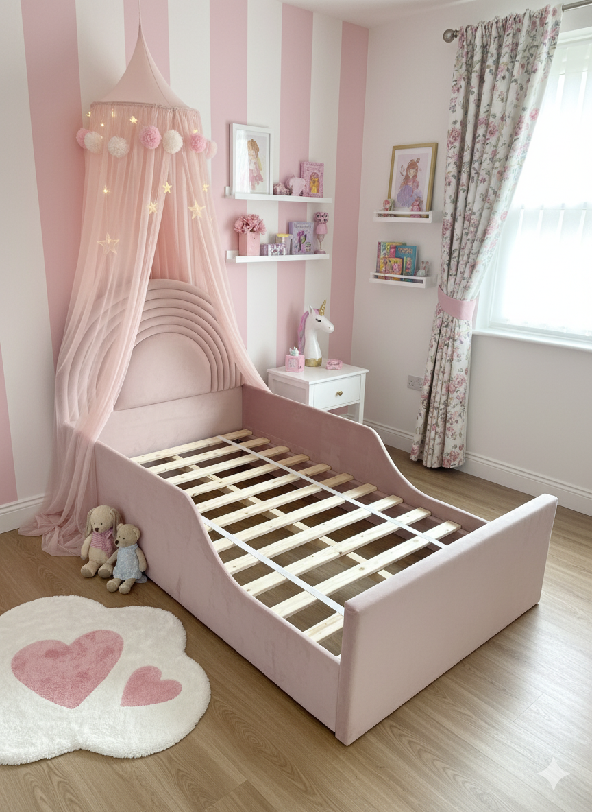 Kids Handmade Rosie Arch Plush Velvet Bed Frame Upholstered Bed with Ottoman Storage