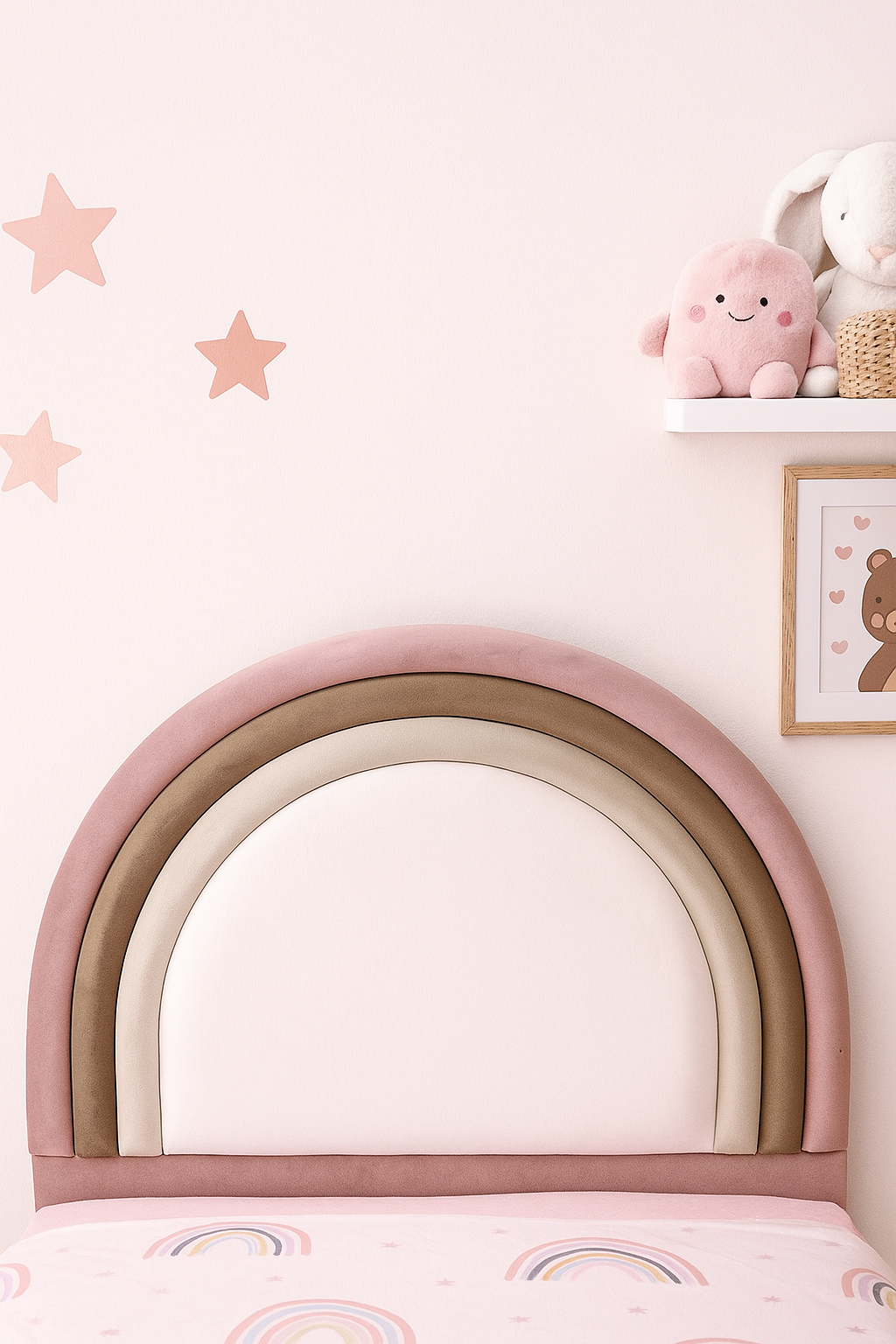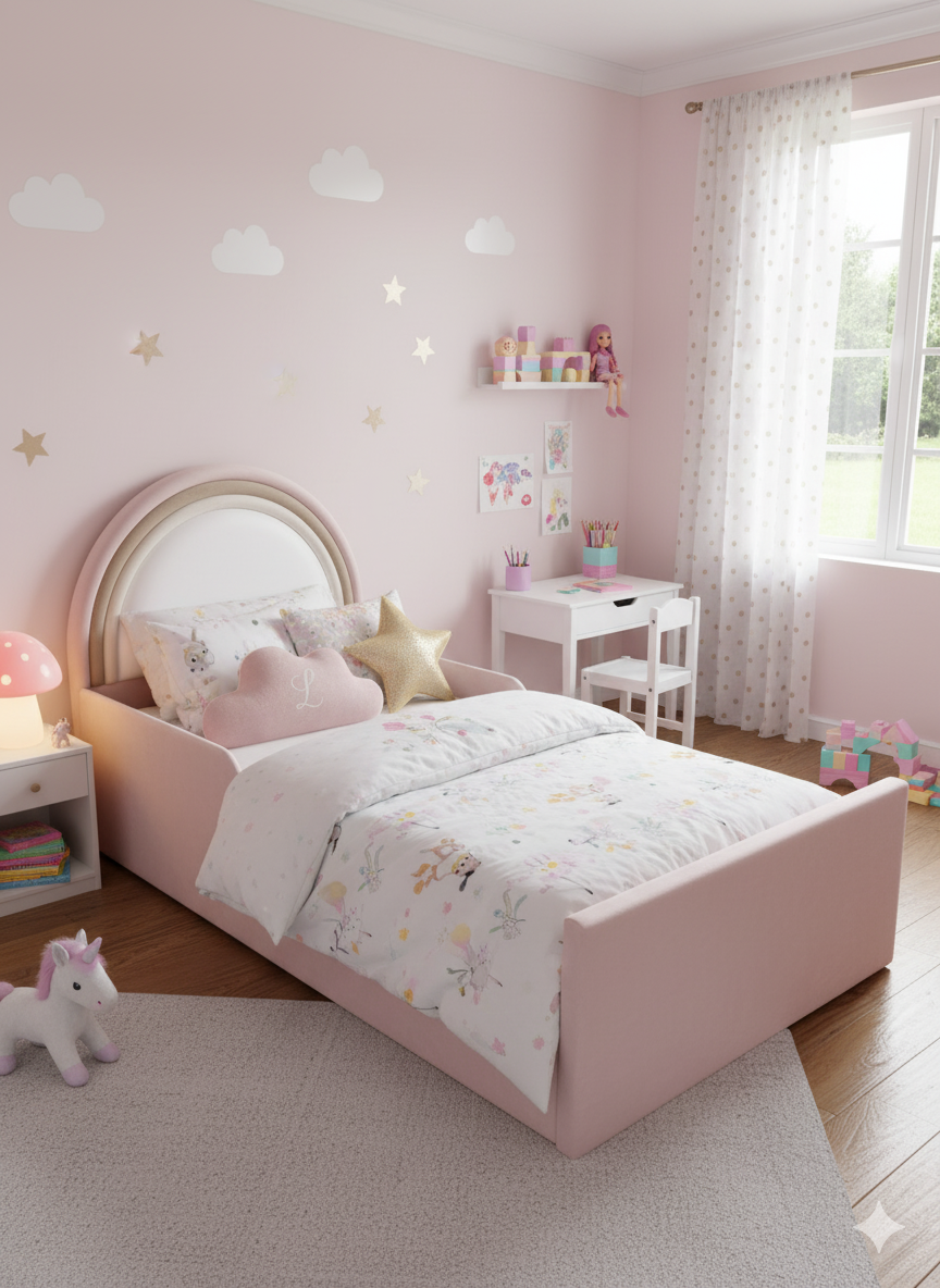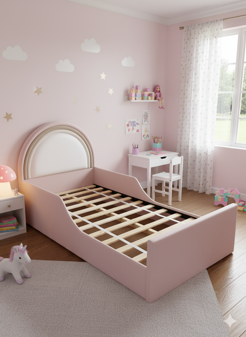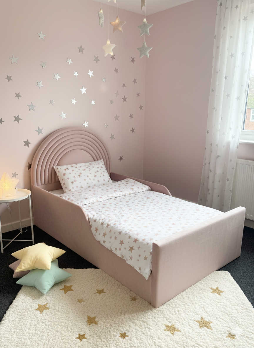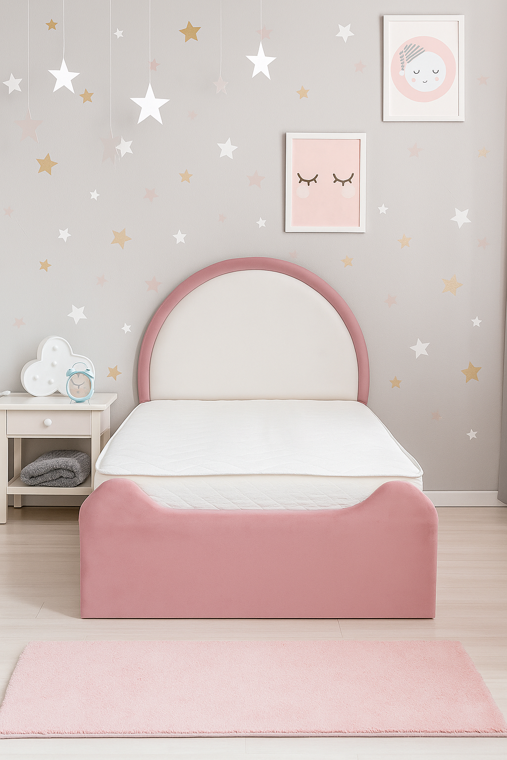 Kids Handmade Rosie Arch Plush Velvet Bed Frame Upholstered Bed with Ottoman Storage