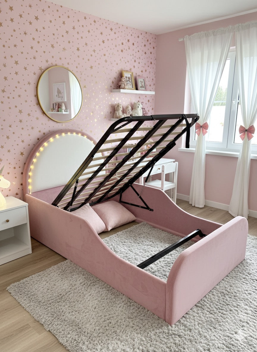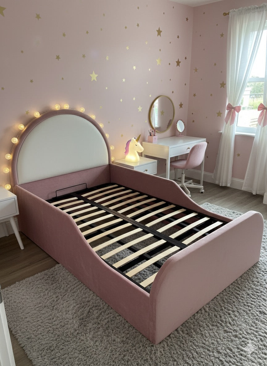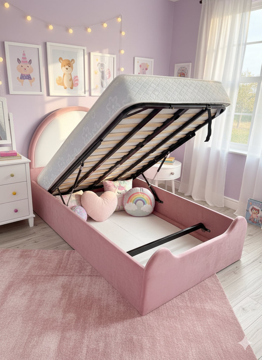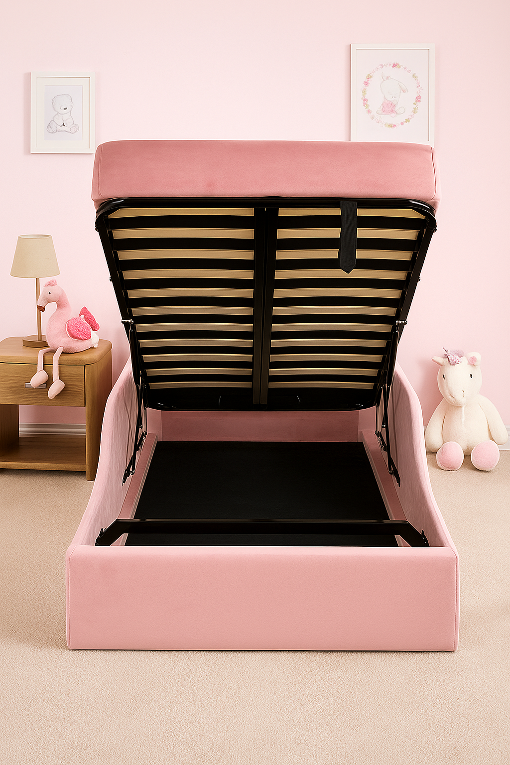 Kids Amelia Dreams Plush Velvet Bed Frame Upholstered Bed with Ottoman Storage