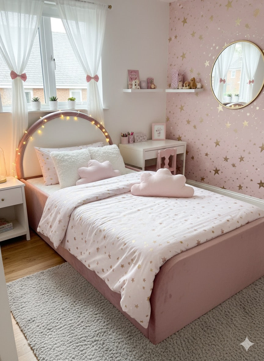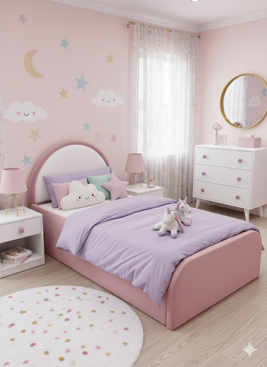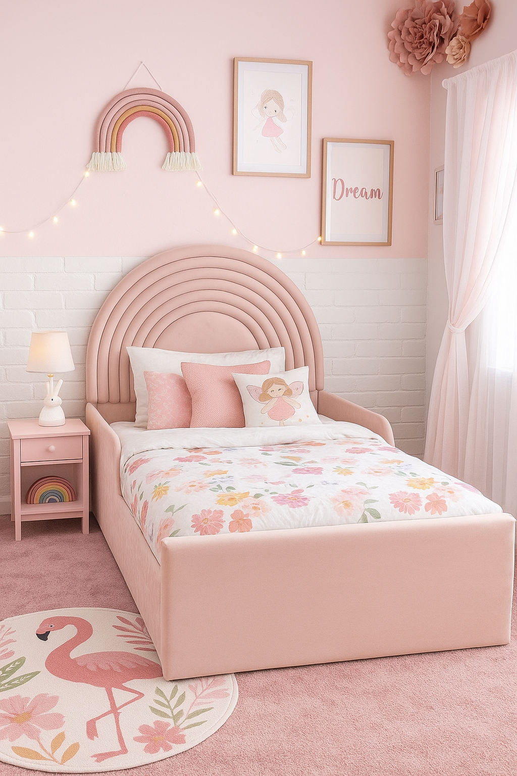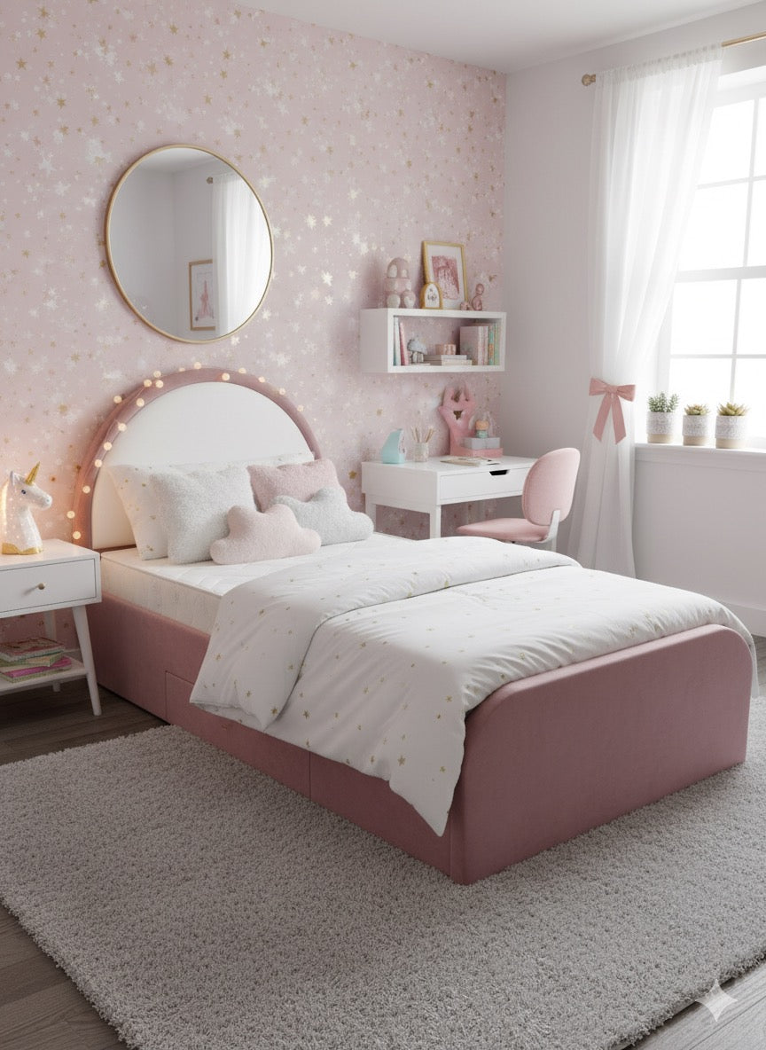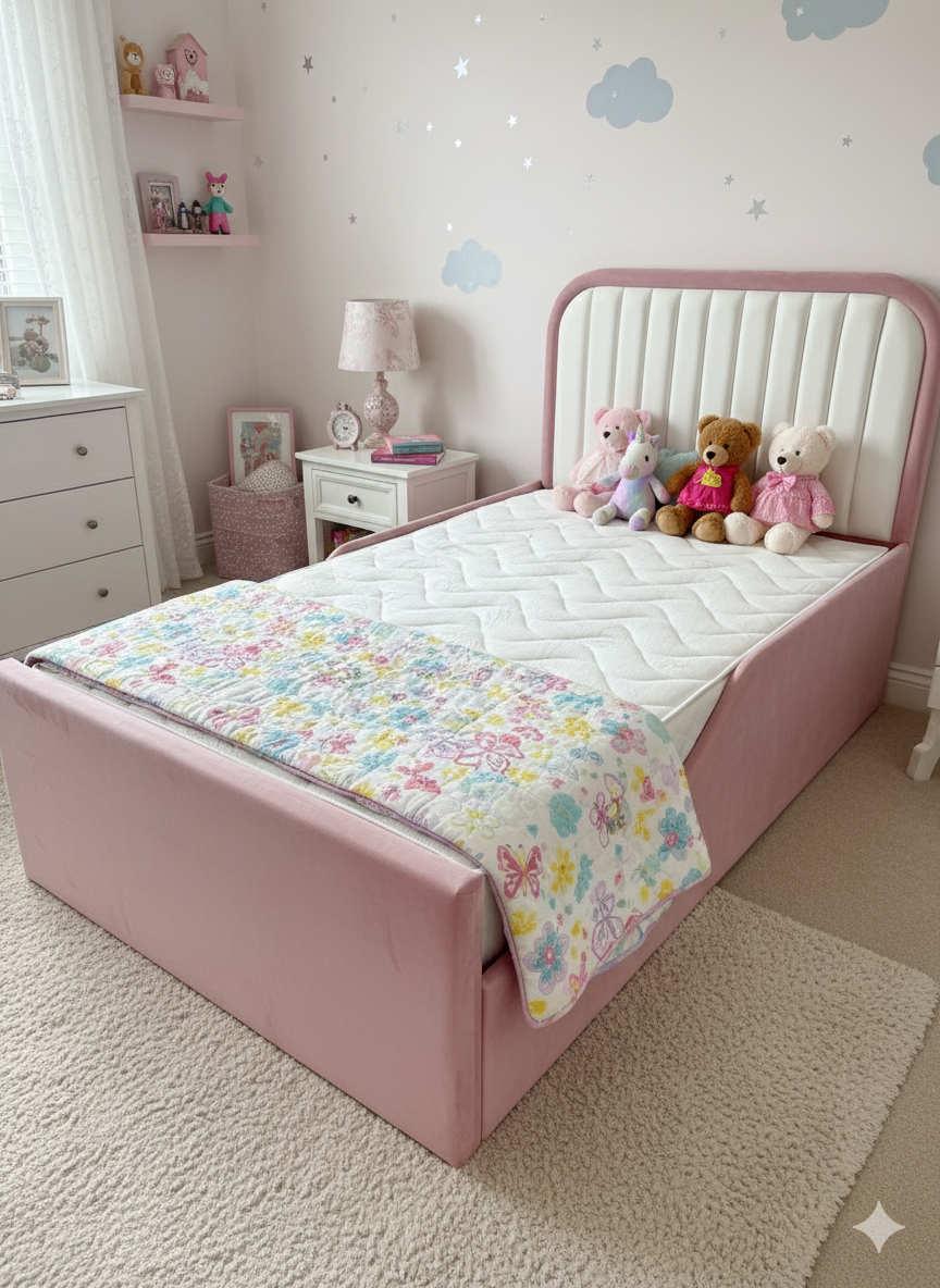 Kids Amelia Dreams Plush Velvet Bed Frame Upholstered Bed with Ottoman Storage