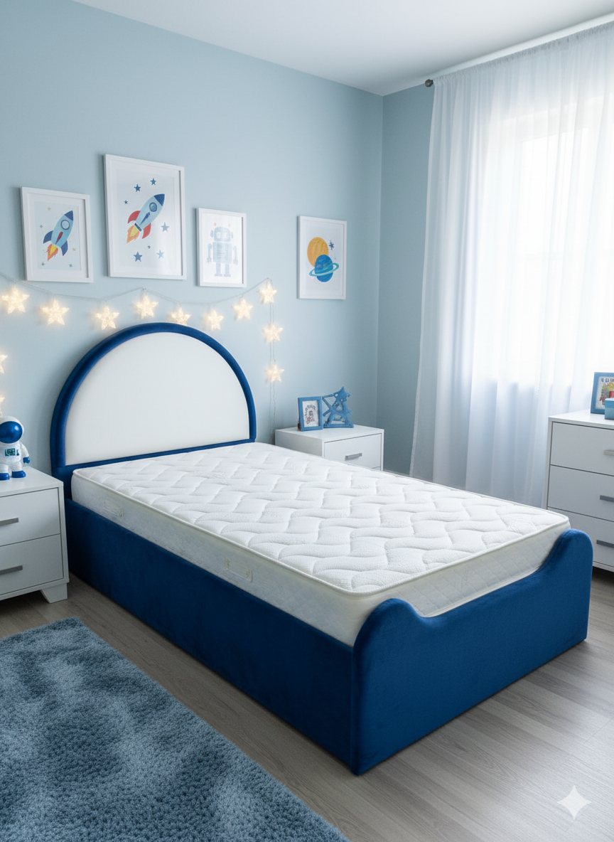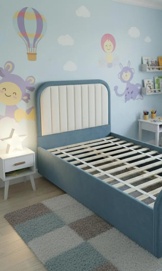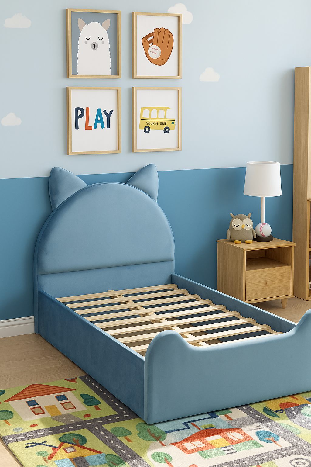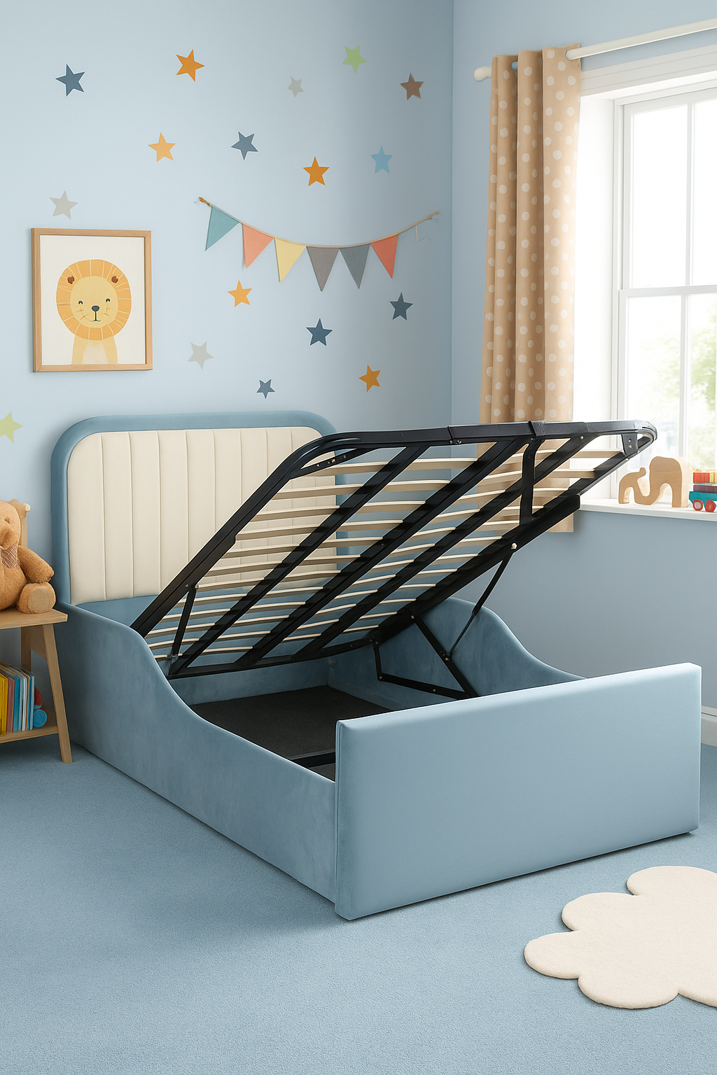 Kids Handmade Linea Plush Velvet Bed Frame Upholstered Bed with Ottoman Storage