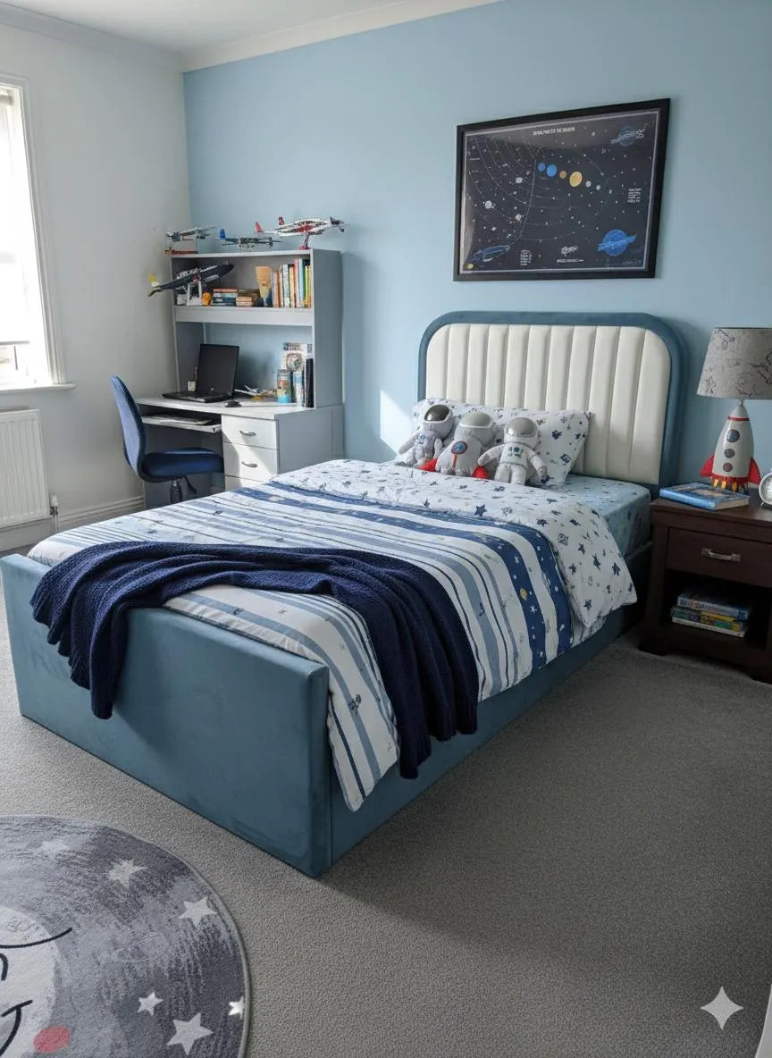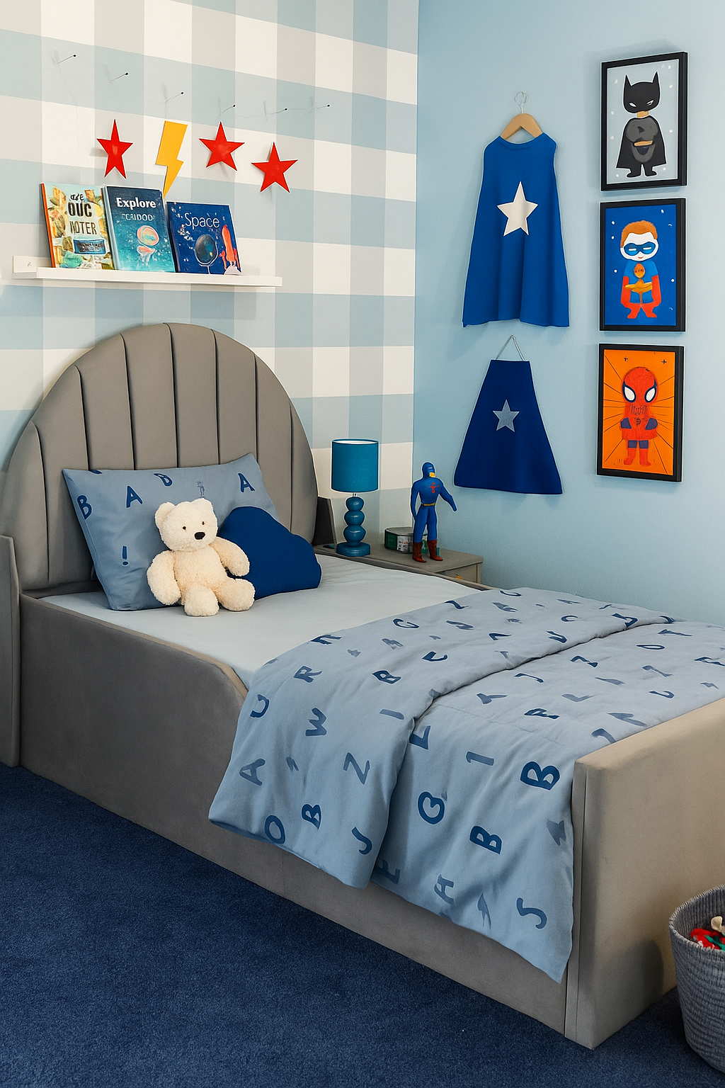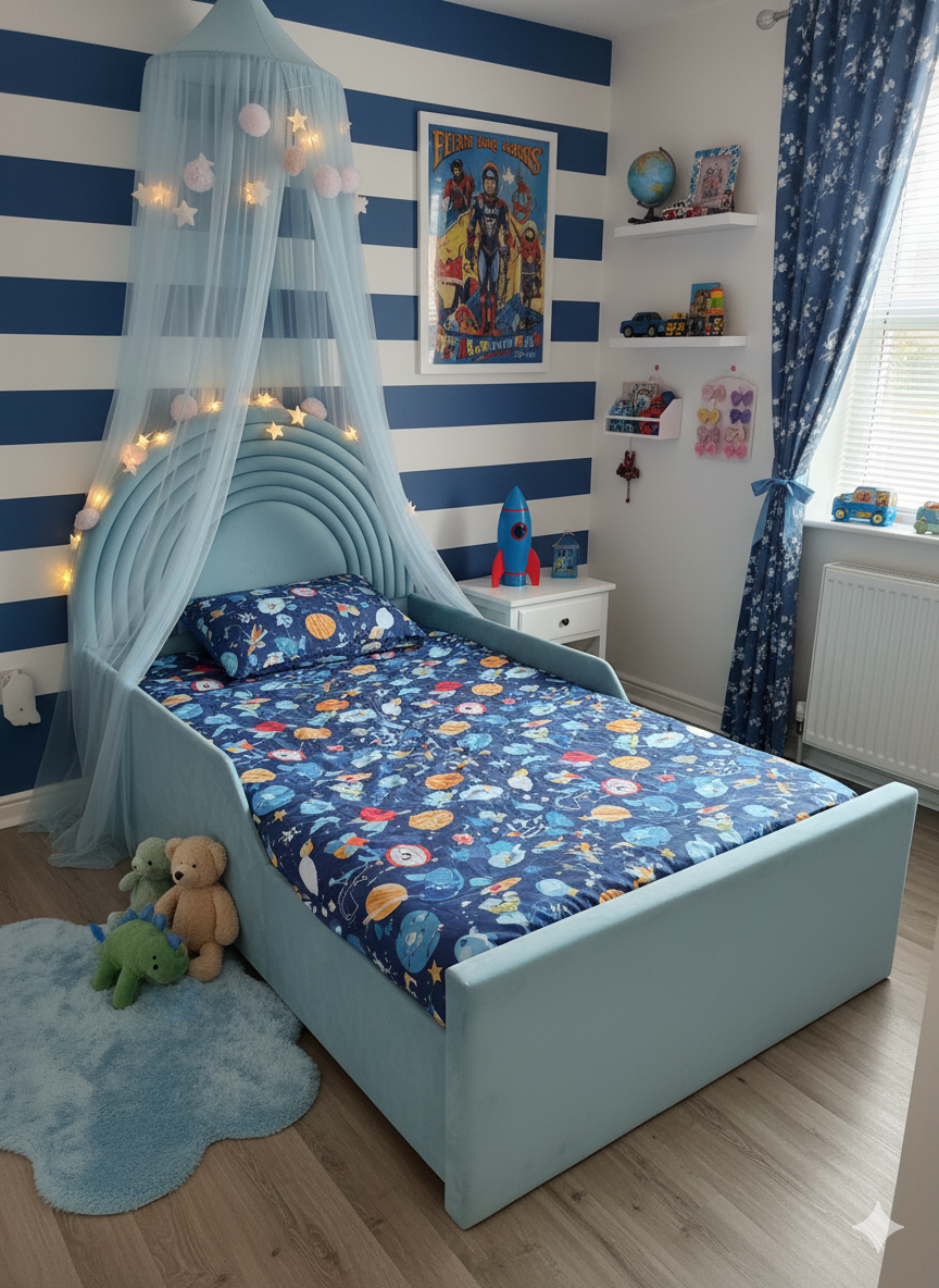 Kids Handmade Linea Plush Velvet Bed Frame Upholstered Bed with Ottoman Storage