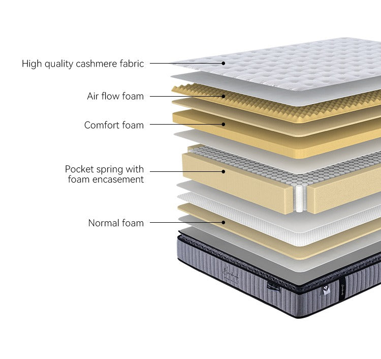 Natural Fresh Pocket Spring Pillow Top Mattress – 3ft 4ft 4ft6 5ft 6ft | Cashmere Fabric | Orthopedic Comfort Layers| Free Return