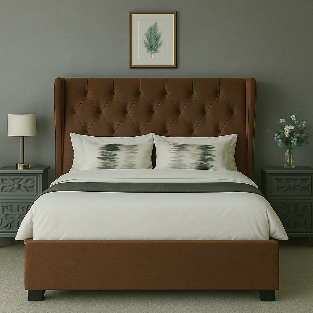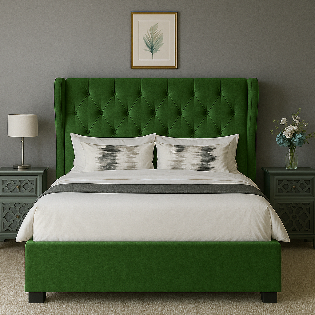 Introducing our Handmade Orlean Ottoman Beds, where craftsmanship meets convenience. These beds offer both side and end lift options for efficient storage. The 54-inch tall headboard adds a touch of grandeur to your bedroom, making these beds a statement piece in any space.